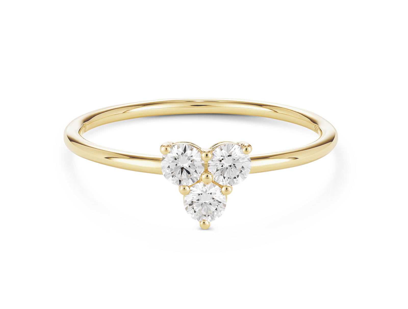 Set in 14k gold, the Mini Trio ring is the perfect everyday accessory whether worn alone or stacked with other rings. Choose between white or yellow gold depending on your style or wear both colors together for a mixed metal look. So go ahead and add a little sparkle to your day!