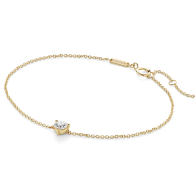 Meet your new go-to everyday jewelry accessory. Available in 10k white or yellow gold, this minimalistic bracelet will compliment any outfit whether worn solo or stacked with other bracelets for a layered look. The ¼ carat stone is graded at VS+ clarity, Very Good cut, Near Colorless and made from 100% renewable wind energy at our lab in Portland, Oregon.