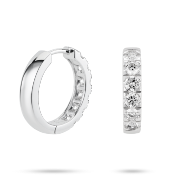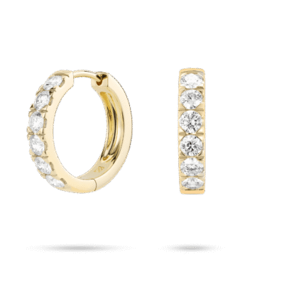 Our long awaited pavé hoops are available in 14k yellow and white gold. Each stone is 0.2 carat of VS+ clarity, Very Good cut and Near Colorless, giving off a stunning sparkle and great for everyday wear.