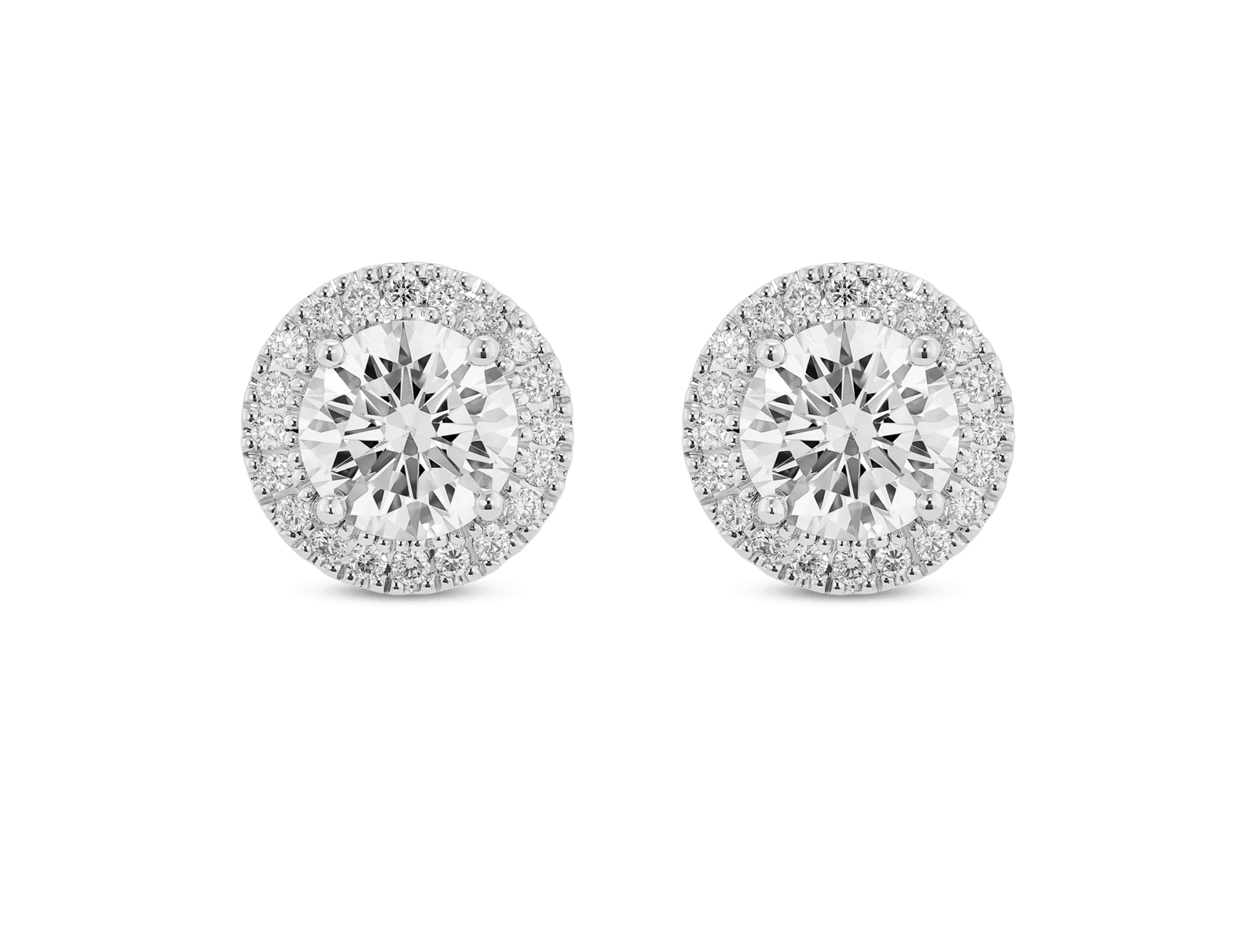 Make a big impact in these 2 carat total weight halo earrings. Each individual earring has a ⁸⁄₉ carat center stone surrounded by pavê lab-grown diamonds. With the stunning sparkle of our white lab-grown diamonds you’ll be sure to get heads turning, but don’t just take our word for it, check out our 5-star reviews.